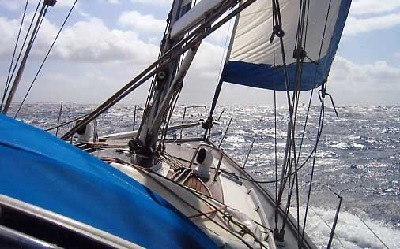 Das Foto ganz oben entstand 2002 in der Karibik an Bord der ANTARES einer Bavaria 42 von Michael König. Das Foto darunter zeigt Vorschiff und Bug des selben Schiffes im Mai 2003 auf dem Atlantik rund 780 Seemeilen östlich der Azoren auf dem Weg nach Spanien.