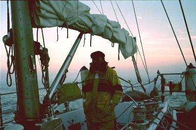 Seit 1986 führt der Typ Segelschiffe über die Meere. Mal mit großer mal mit kleiner Crew: Mal mit vier Leuten von den Azoren nach Spanien, mal zu sechst quer durch die Karibische See oder mit acht von Istrien nach Dubrovnik und zurück, von Malaga nach Neapel oder zu siebt auf einer Segelrundreise durch die Ägäis. 2002 trieb er sich insgesamt drei Monate auf seegehenden Yachten herum, 2003, 2004 und 2005 kamen auch jeweils zwei bis drei Monate zusammen. 2006 sind es wieder zwei geworden mit Törns in Dalmatien dort übrigens mit der nagelneuen Bavaria 46 CR, vor den Balearen und Elba-Korsika. Inzwischen liegen dokumentiert an die 25.000 sm in meinem Kielwasser. Und noch immer gibt es für mich kaum einen besseren Ort als auf einer soliden Segelyacht mit unternehmungslustiger Crew. Meine Segelführerescheine und Lizenzen sind zwar recht hilfreich, aber bedeutender erscheinen mir meine Revierkenntnisse und meine Erfahrungen mit Dutzenden verschiedener Yachten, ständiges Dazulernen, solide Seemannschaft, aufmerksame Wetterbeobachtung und Einfühlungsvermögen. Für mich sind das die Grundlagen sicherer Seereisen und großer Segelerlebnisse. Mit der Stahlketsch DAISY habe ich ein Heimatschiff gefunden, das für alle Reviere geeignet und gerüstet ist. Ein geräumiges Mannschaftsschiff, das Gelassenheit und Geborgenheit vermittelt. Irgendwie passen wir zusammen.