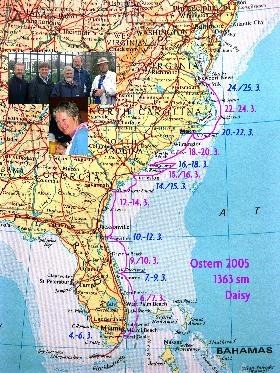 Segeln in Amerika: Ein Highlight des Jahres 2005 war unsere Segelreise mit der DAISY von Miami, Florida, nach Cape Canaveral, St. Augustine, Charleston, Georgetown und Beaufort um Cape Hatteras und in die Chesapeak Bay nach Norfolk. Wir hatten sonniges Wetter, mäßigen Wind, Starkwind und mal einen richtigen Sturm. Zwischen dem 5. und dem 25. März verbrachten wir auf diesem Törn neun Nächte in Häfen oder vor Anker und den Rest auf See, im Golfstrom oder an seinem Rand mit 24° C warmem Wasser und später in der Chesapeak Bay bei fast nordischer Kälte während der nächtlichen Einsteuerung nach Norfolk in Virginia. Mit 15 kn Speed durchs Wasser passierten wir das Cape Hatteras auf Halbwindkurs. 1000 sm unter Segeln und nur 363 unter Maschine! Nach Washington D.C. sind wir mit dem Auto gefahren und von dort heimgeflogen. Drei Wochen voller Erlebnisse und Abenteuer, wie sie eben nur Seglerinnen und Segler erleben.