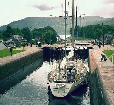 Der Rest segelte tags drauf weiter nach Port Askaig, Oban und Fort William durch den Caledonischen Canal. Hier führt die Schleußentreppe "Neptuns stairs" hinab ins Loch Neß. Nessy spielte nicht mit DAISY so daß wir ungeschoren durchkamen bis Inverness. Das war unser Aussteigepunkt. Die DAISY erwies sich als schnelles und ausgesprochen komfortables Schiff. Und einige wußten: Wir kommen wieder.