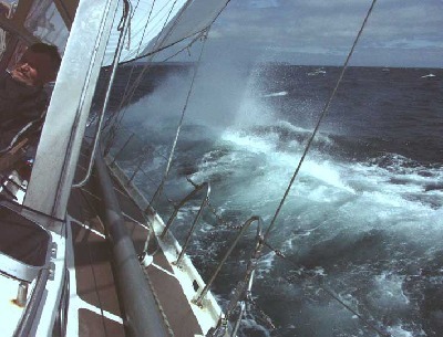 Hier rauschen wir vor der Küste Cornwalls kreuzend durch Zweimeterseen und arbeiten uns gegen den steifen Nordwest nach Falmouth durch. Unser Schiff nimmt's gelassen wie Walter, der die Ruhe für ein Nickerchen findet.