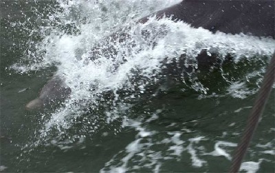 "Außenbordskameraden" waren uns oft nahe in den Gewässern vor den beiden Carolinas, den so kolonialistisch anmutenden Städten der Küstenstaaten. Bis ins Brackwasser der Flußläufe hinein und im Intra-Coastal-Waterway begleiten zahllose Delphine und Tümmler munter und verspielt das Schiff.